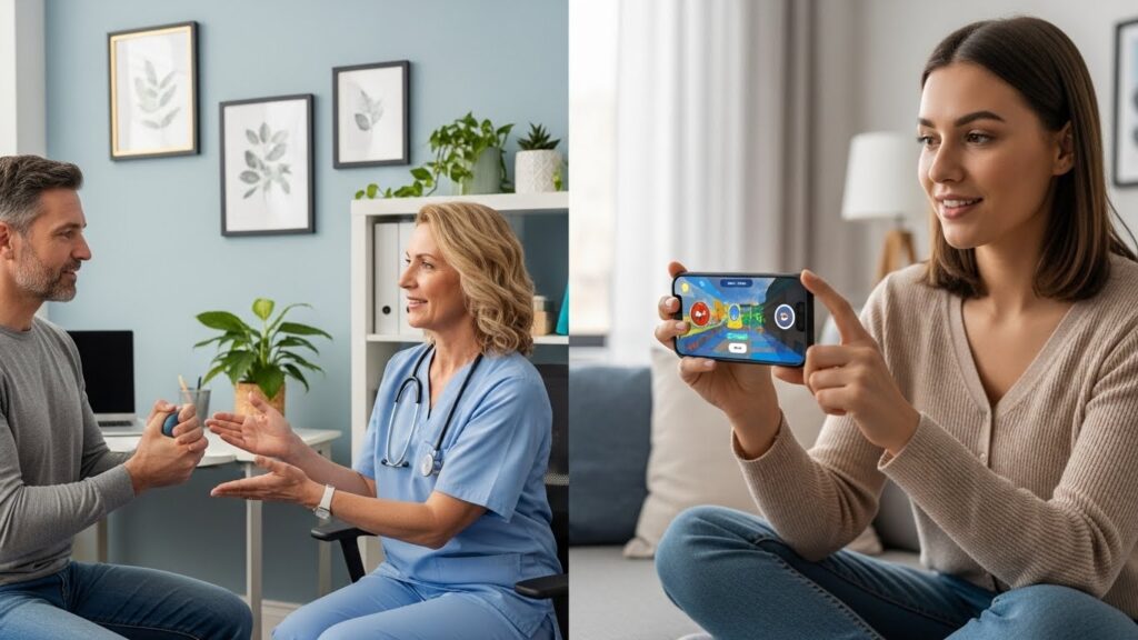 La distinción es clave. VoxRehab VR no diagnostica, no trata ni sustituye la atención clínica. En cambio, complementa los planes de rehabilitación establecidos por profesionales de la salud, ofreciendo: